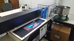 Presenta en su frente una pantalla de 4 x 20 caracteres, donde el operario puede seleccionar las distintas maneras operativas, anchos y repeticiones de pulso láser, como control sobre el sistema de posicionamiento. Distintos sensores proveen información de la provisión de cuerpos a ser laseados desde un alimentador vibratorio. La movilización de los cuerpos plásticos es impulsada mediante flujos de aire dirigidos adecuadamente.